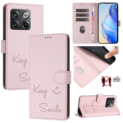 Funda de Cuero Rfid con Relieve Sonriente para OnePlus Ace Pro/10T (Rosa)