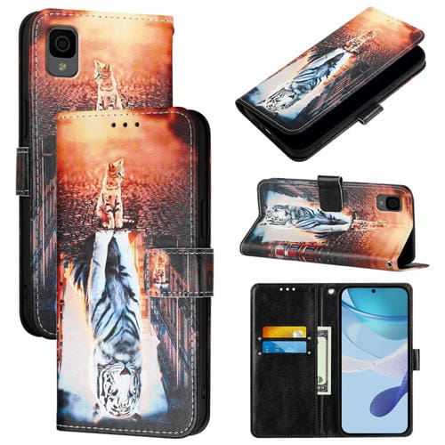 Funda de Cuero para TCL 30 XL T701DL con Diseño de Gatos y Tigres (Color Liso)