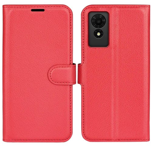 Funda de Cuero con Tapa Horizontal y Textura de Lichi para TCL 501 con Soporte (Morado)