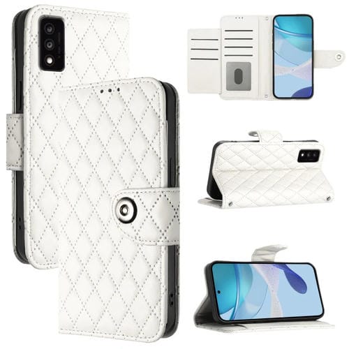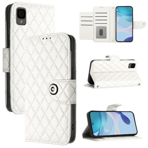 Funda de Cuero con Tapa y Textura Rombal para TCL 30T T603Dl con Cordón (Blanco)