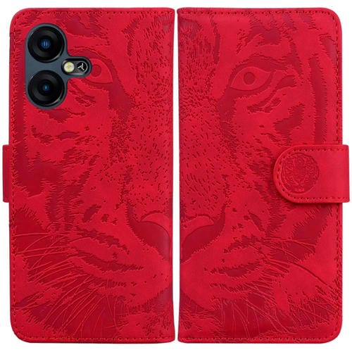 Funda de Cuero Flip para Tecno Pova Neo 3 con Patrón Tiger Embossing (Rojo)