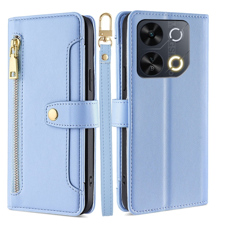 Funda de Cuero para Teléfono Itel P65 con Cremallera y Textura de Oveja (Azul)