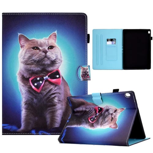Funda para Lenovo Tab M10 con Coser Pen Slot y diseño Gato de la Corbata de Lazo