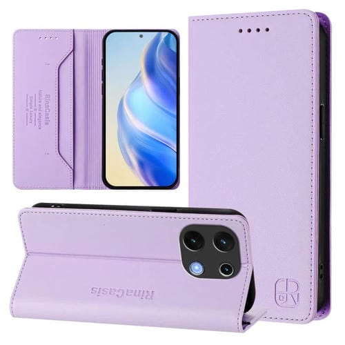 Funda de Cuero Rfid con Relieve en Panal para Umidigi Note 100 (Morado Claro)