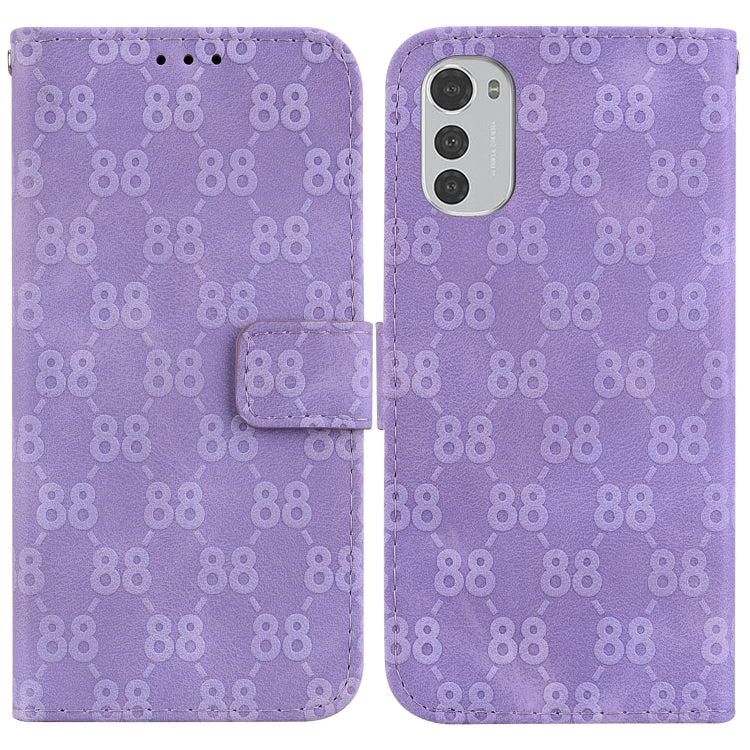 Estuche para Motorola Moto E32 de Cuero en Relieve con Doble Forma de 8 (Púrpura)