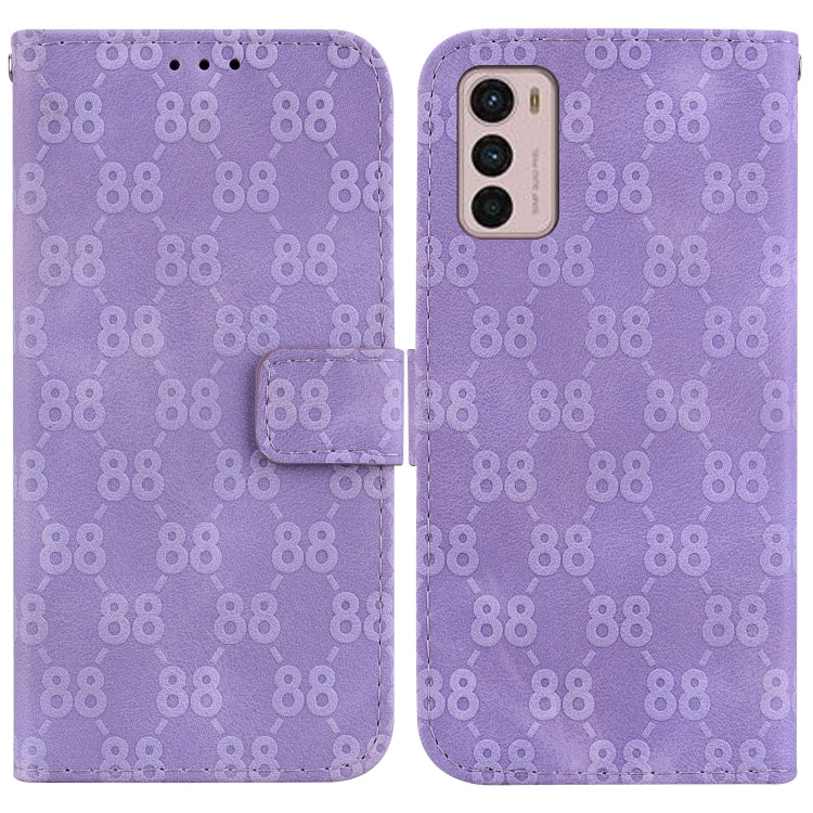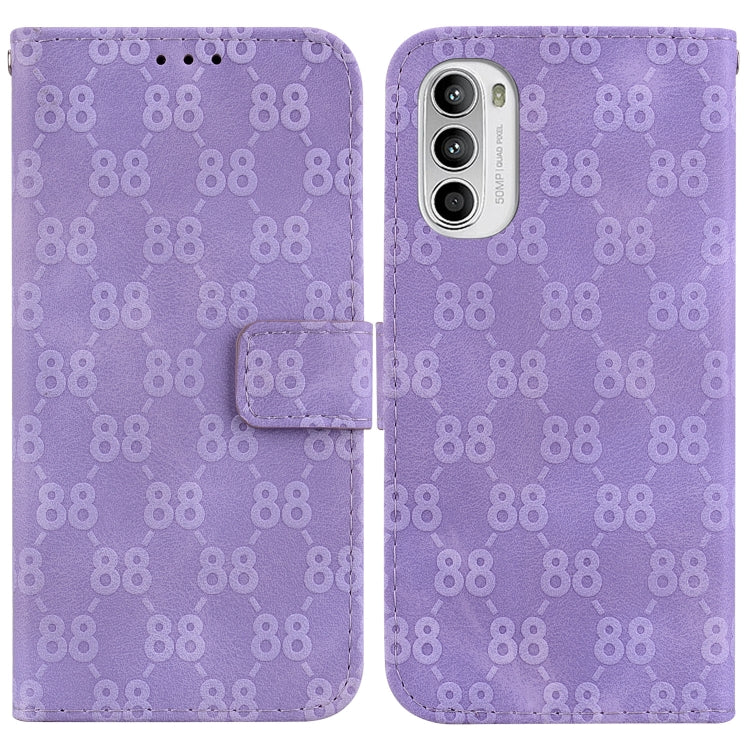 Estuche para Motorola Moto G52 de Cuero en Relieve con Doble Forma de 8 (Púrpura)