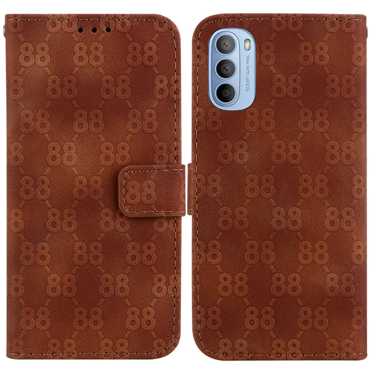 Estuche para Motorola Moto G52 de Cuero en Relieve con Doble Forma de 8 (Marrón)