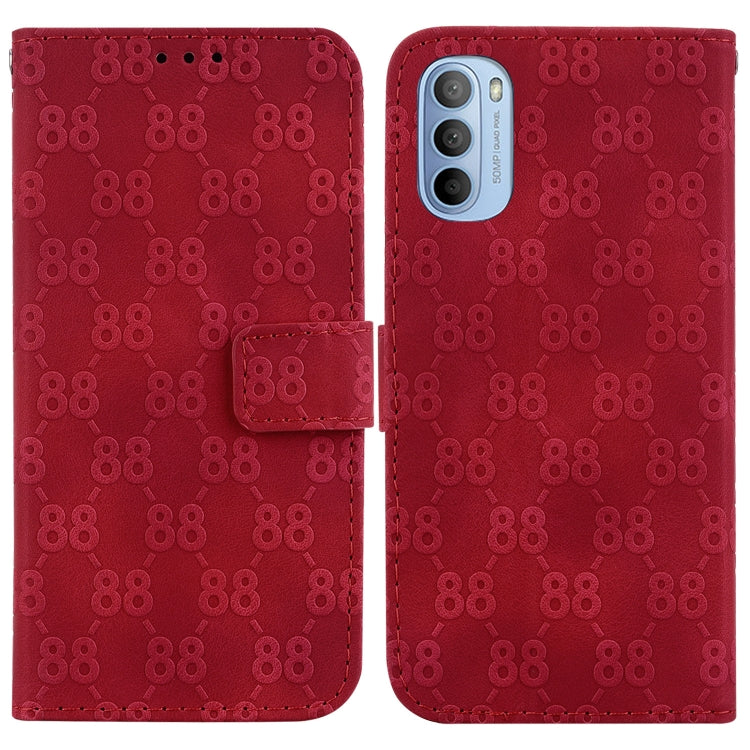 Estuche para Motorola Moto G31 / G41 de Cuero en Relieve con Doble Forma de 8 (Rojo)
