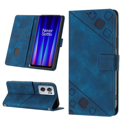 Estuche para OnePlus Nord 2T 5G de Cuero en Relieve con Tacto de Piel (Azul)