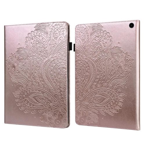 Estuche para Tableta Amazon Fire Max 11 Cuero Estampado Pavo Real en Relieve (Marrón)