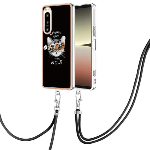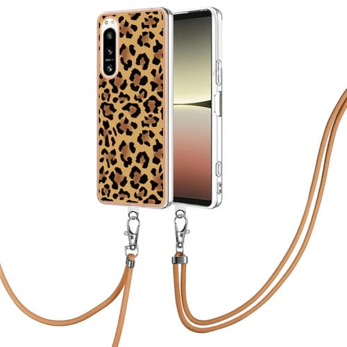 Estuche para Sony Xperia 5 IV IMD Doble Cara con Galvanoplastia y Cordón (Leopardo)