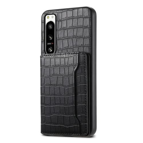 Estuche para Sony Xperia 5 IV con Diseño Bolsa para Tarjetas Textura Cocodrilo (Blanco)