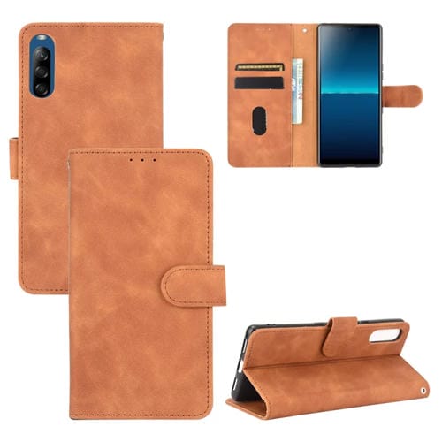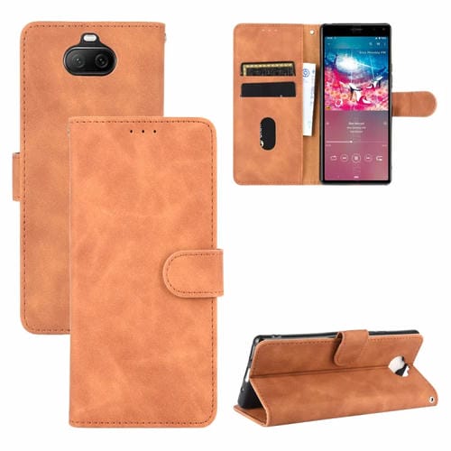 Estuche para Sony Xperia 8 Cuero Sintético con Hebilla Magnética y Soporte (Marrón)