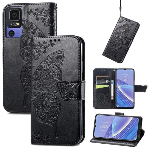Pour TCL 40 SE Butterfly Love Flower Étui de téléphone en cuir gaufré (Noir)
