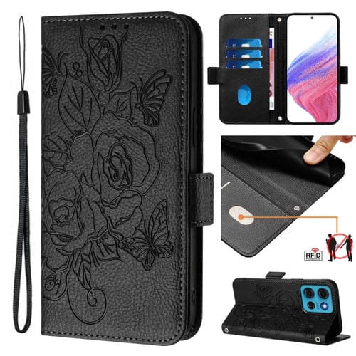 Funda de Cuero Antirrobo RFID con Relieve para Motorola Moto G75 (Negra)