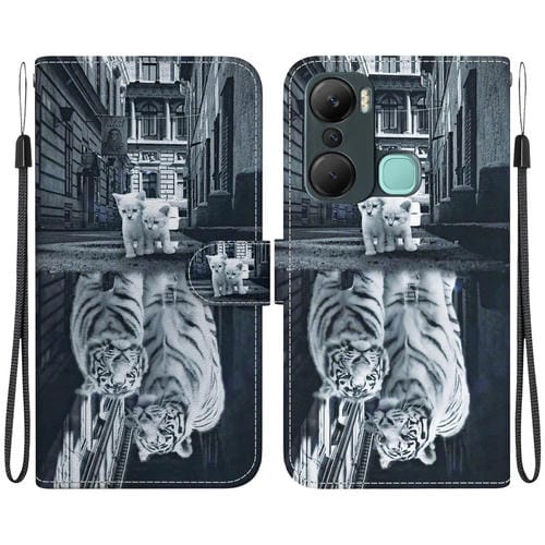 Funda de Cuero para Infinix Hot 20I con Dibujo Coloreado y Textura de Cristal (Lirio)