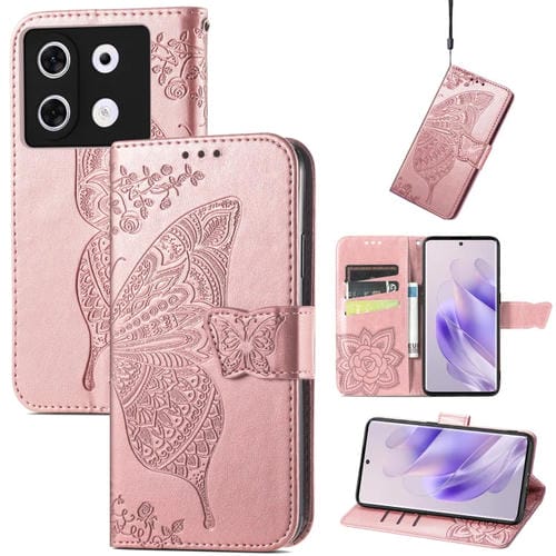 Funda de Cuero En Relieve Butterfly Love Flower para Infinix Zero 30 4G (Oro Rosa)