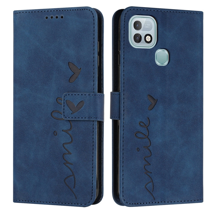 Funda para Infinix Hot 10I Skin Stent Heart patrón de Cuero caja de cuero (Azul)