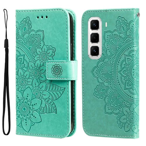 Funda de Cuero con Relieve Flores Siete Pétalos para Infinix Hot 50 Pro+ 4G (Verde)