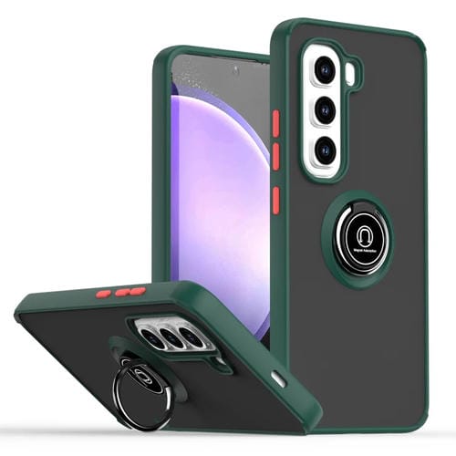 Funda TPU + PC con Anillo para Infinix Hot 50 Pro 4G Q Shadow 1 Series (Verde Oscuro)