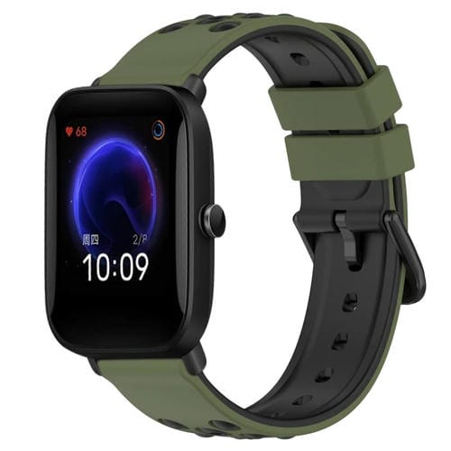 Correa de Reloj Amazfit Pop 20mm Silicona Porosa Dos Colores (Verde Militar + Negro)