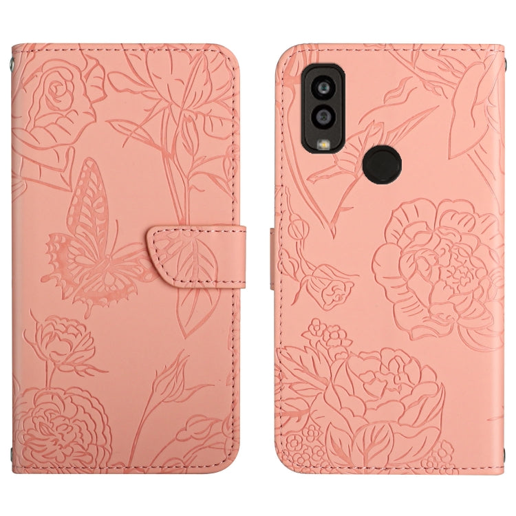 Funda de Cuero Kyocera Android One S9 En Relieve Mariposa Peony (Rosa)