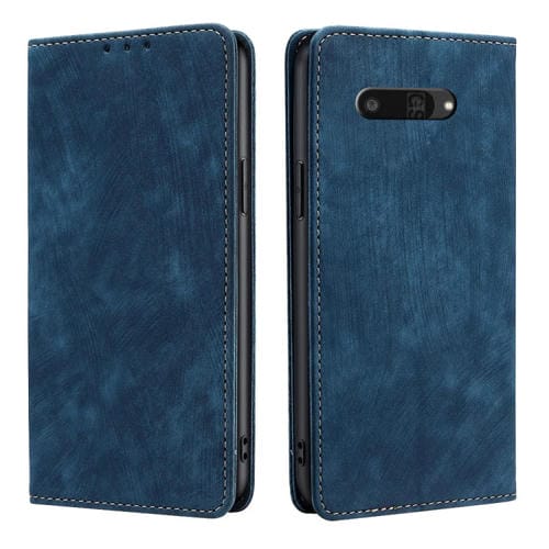 Funda de Cuero Magnética con Cepillo Antirrobo RFID para Kyocera Digno Sx4 5G (Azul)