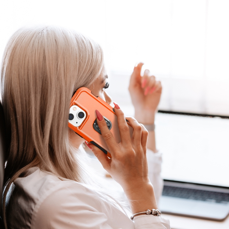 Caja de Teléfono TPU + Soporte de Anillo + PC para iPhone 13 Mini (Orange)