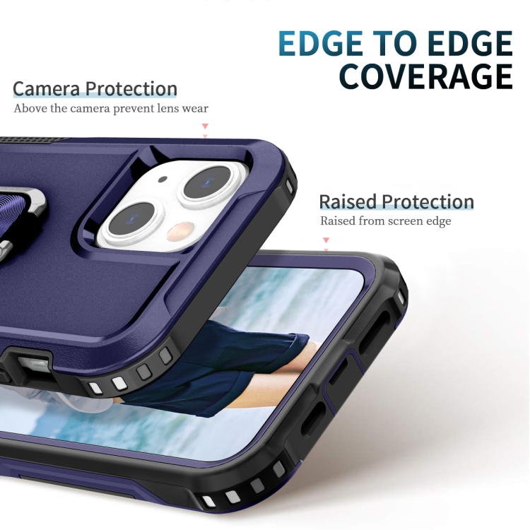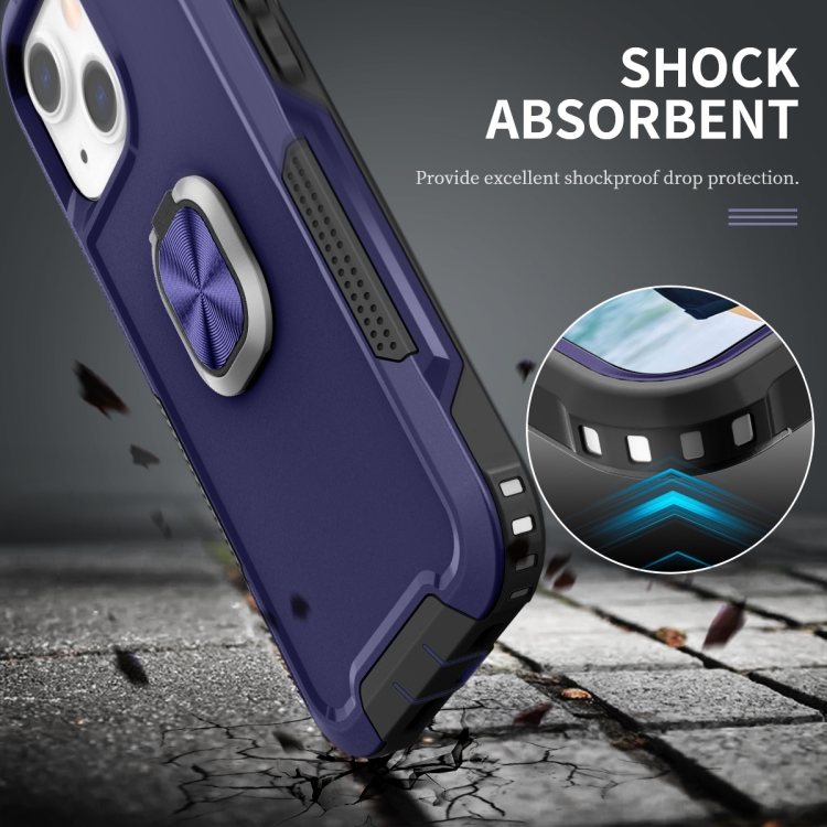 Funda Telefónica 3 En 1 PC y TPU con Soporte de Anillo para iPhone 13 Mini (Azul Marino)
