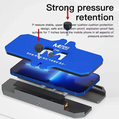 El Accesorio Maant H4 Hermético es una herramienta diseñada para la fijación y el mantenimiento de presión integral de Teléfonos celulares con Pantallas laterales de hasta 7 pulgadas. Su función principal es facilitar la reparación y manipulación segura de dispositivos Móviles, permitiendo la sujeción firme y estable durante procesos como la extracción de la Cubierta Trasera, reparación de la Placa Base y reemplazo de Batería. Este accesorio incorpora un diseño hermético con amortiguación superior e inferior mediante esponja antideslizante, que protege el Teléfono frente a daños y garantiza una sujeción sin afectar la pintura del Marco ni los Botones. Además, cuenta con ranuras específicas para la Cámara y Tarjetas, evitando daños y fugas durante el mantenimiento técnico.