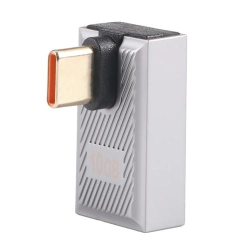 • 1x Adaptador de Carga USB-C Macho a USB Hembra 10 Gbps Curva Media 90 Grados (Plateado)