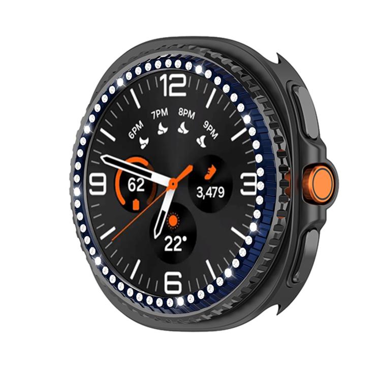 Anillo protector de metal con diamantes de una sola fila para Samsung Galaxy Watch8 Classic de 46 mm (azul original)