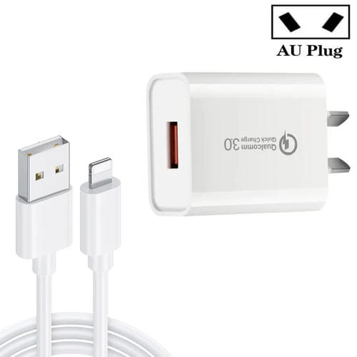 Cargador Rápido Ca-25 Qc3.0 Usb 3A con Cable De Datos Usb A 8 Pin Enchufe Au (Blanco)