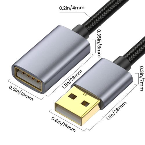 - 1x Cable de Carga y Datos Extensión USB 2.0 Macho a A Hembra 3 Metros