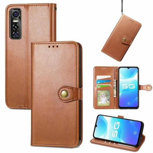 Caja de Teléfono de Cuero de Cuero de Color Sólido Vivo S7E (BRWon)