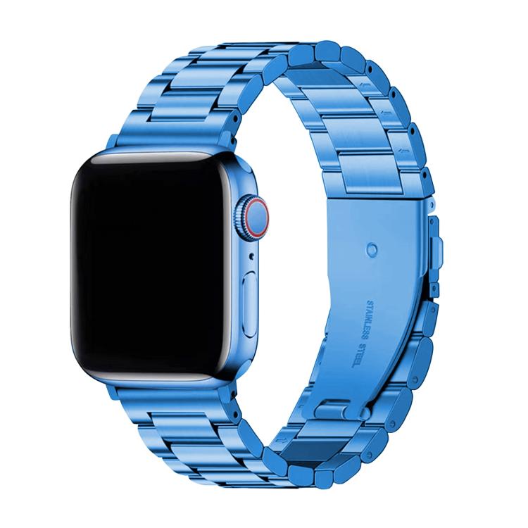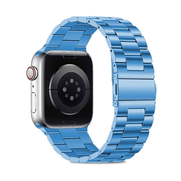 Correa de acero inoxidable con tres cuentas y película curva 3D para Apple Watch Series 10 de 42 mm (azul)