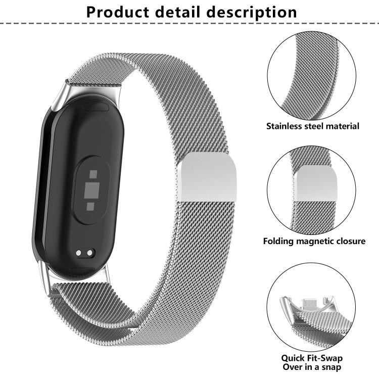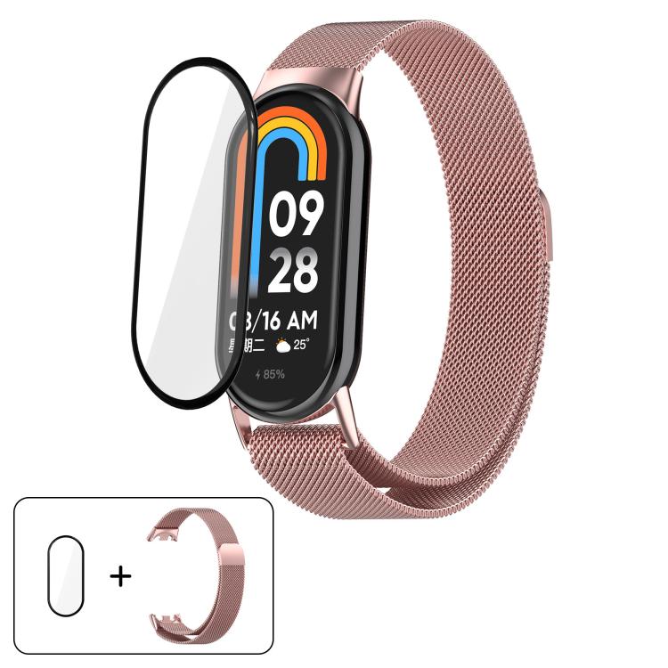 Correa de acero inoxidable milanesa con película curva 3D para Xiaomi Smart Band 10/10 NFC (rosa)