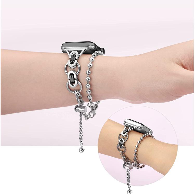 Correa de aleación de zinc con cadena de cuentas de doble círculo para Apple Watch de 42 mm, 41 mm, 40 mm y 38 mm (negro)