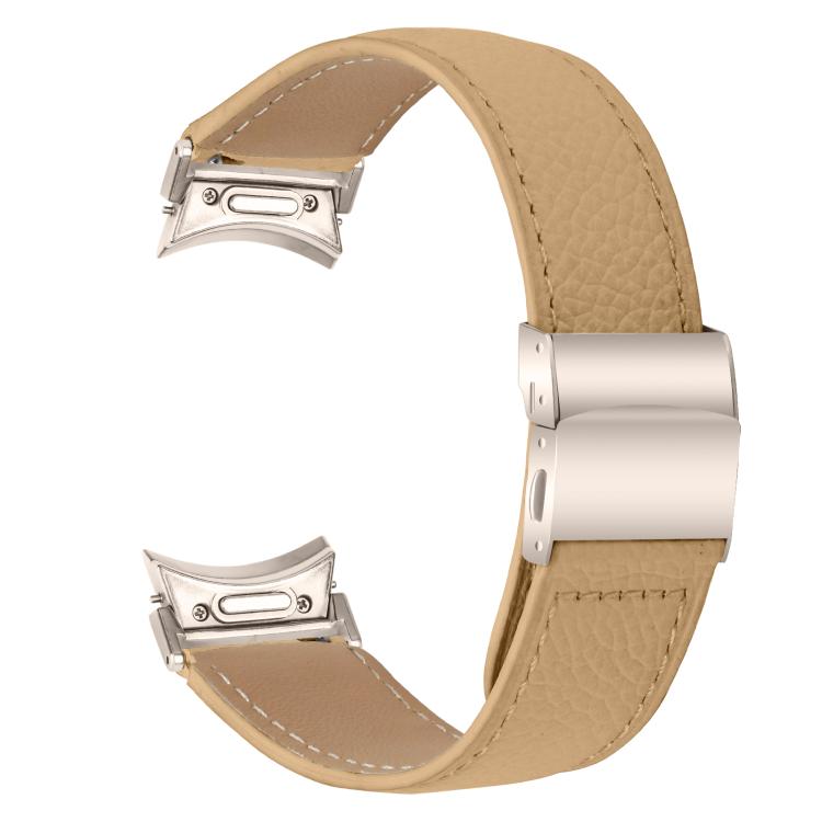 Correa de cuero con hebilla trasera de tortuga y textura de lichi de liberación rápida para Samsung Galaxy Watch 7 (40/44 mm) (Camel)