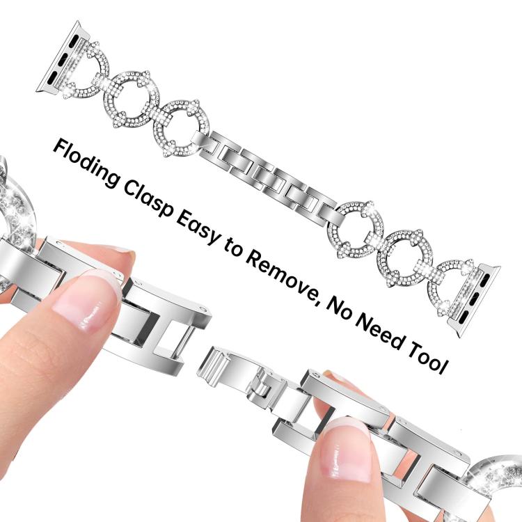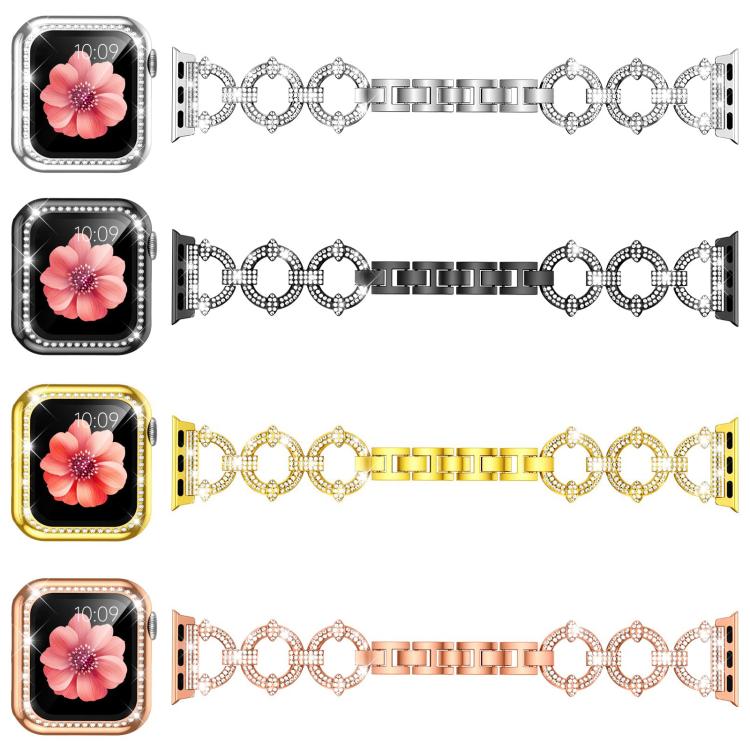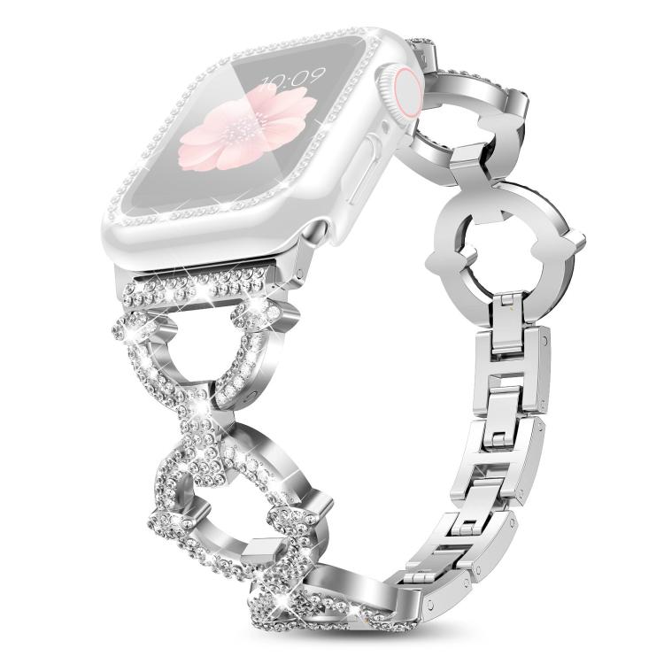 Correa de metal con diamantes en forma de O y película templada integrada para Apple Watch Series 44 mm xDfind (plateada)