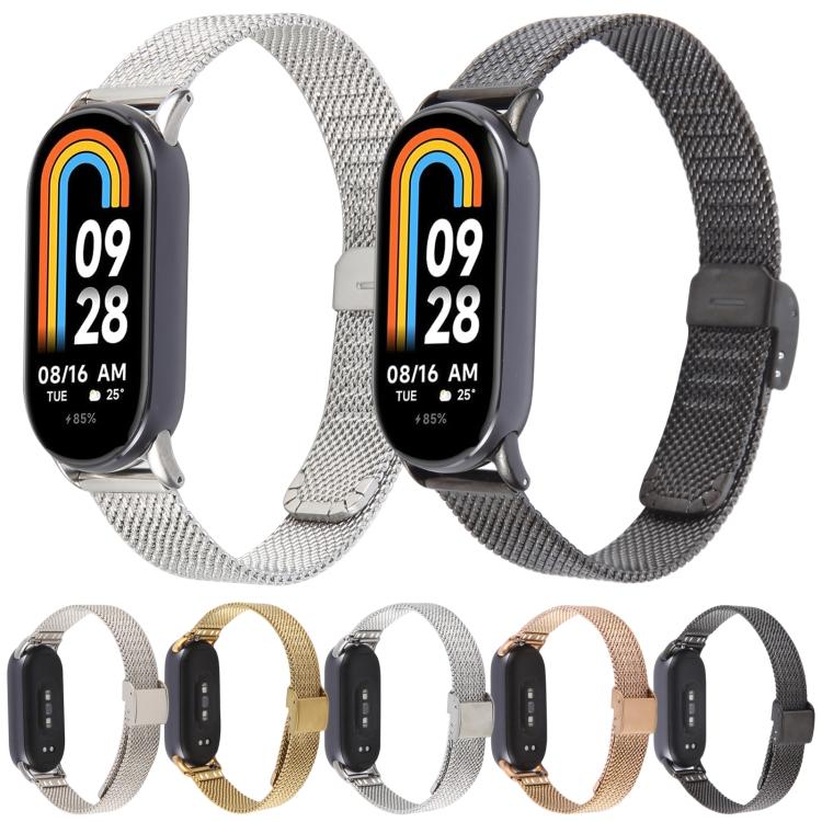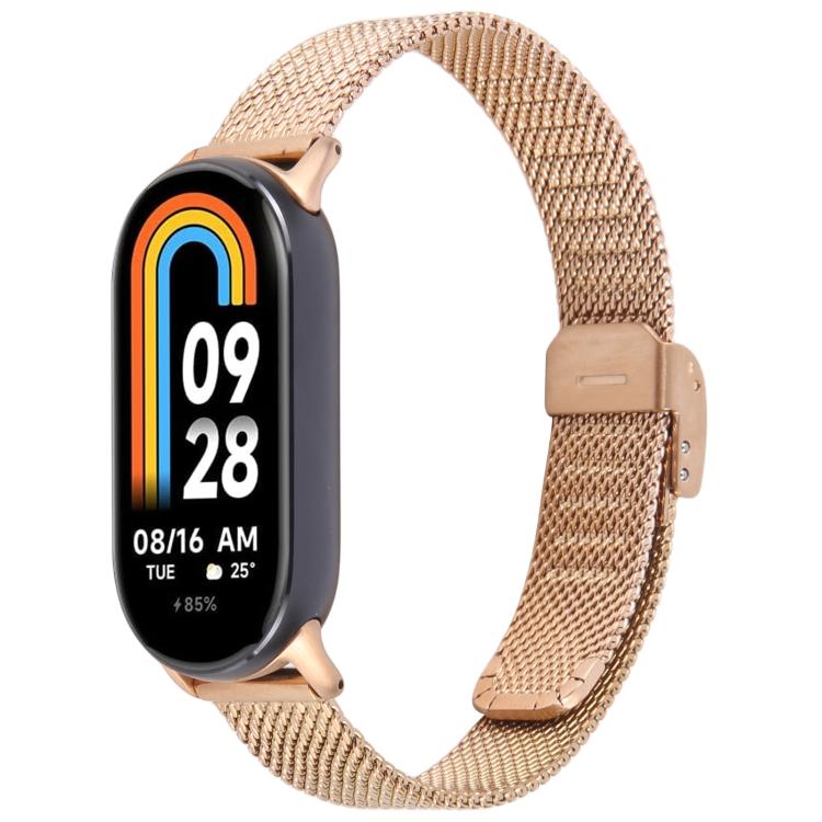 Correa de metal milanesa con hebilla integrada para Xiaomi Smart Band 9/8 (oro rosa)