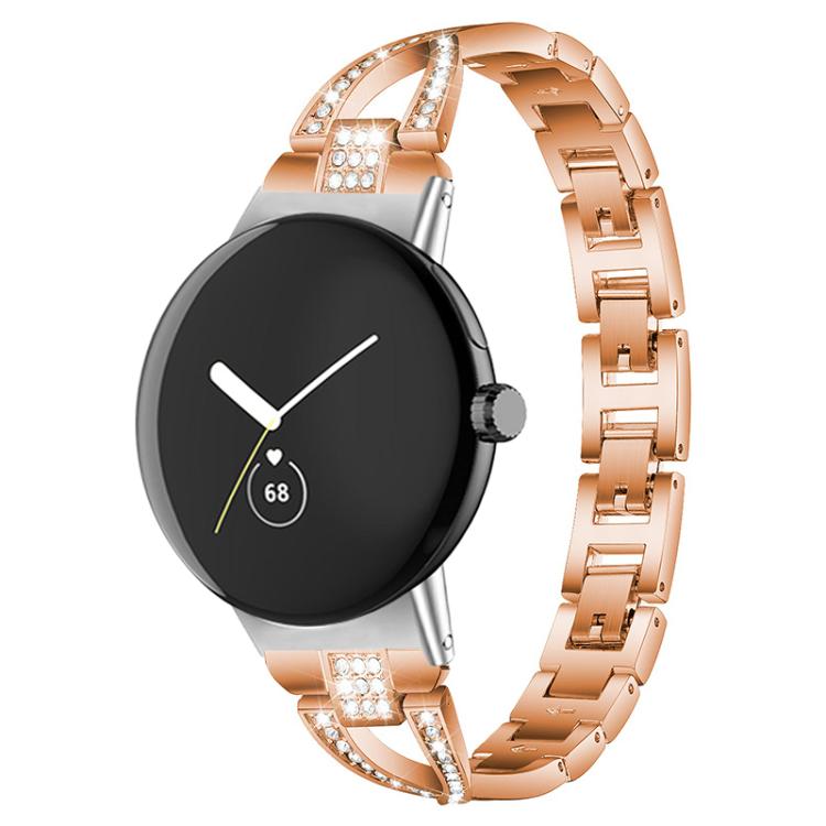 Correa de metal xDfind de 41 mm con diamante en forma de X y una sola fila para Google Pixel Watch 4 / 3 / 2 / 1 (oro rosa)