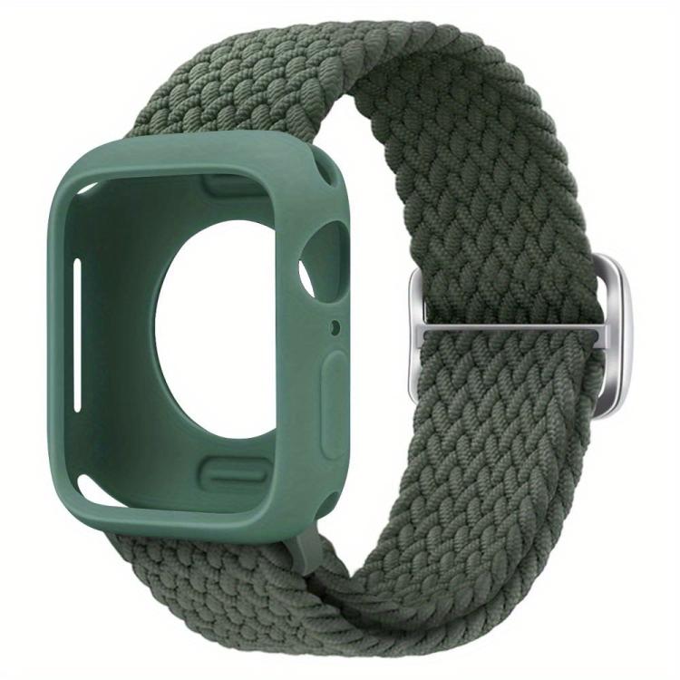 Correa de nailon con hebilla de escalera y funda de silicona para Apple Watch de 44 mm/45 mm (verde militar)