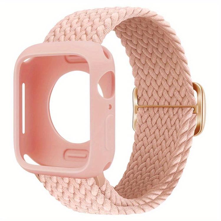 Correa de nailon con hebilla de escalera y funda de silicona para Apple Watch de 44 mm y 45 mm (rosa)
