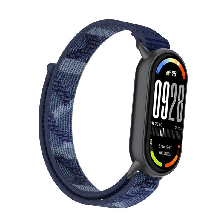 Correa de reloj con cierre de velcro de nailon integrado para Xiaomi Smart Band 10/9/8 (azul silencioso)