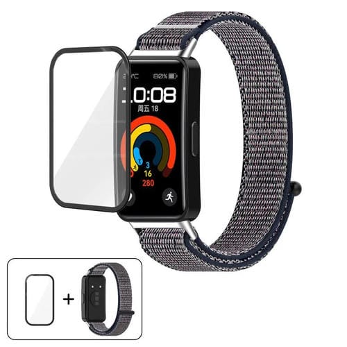 Correa de reloj con cierre de velcro de nailon y película curva 3D para Huawei Band 10/10 NFC (azul medianoche)