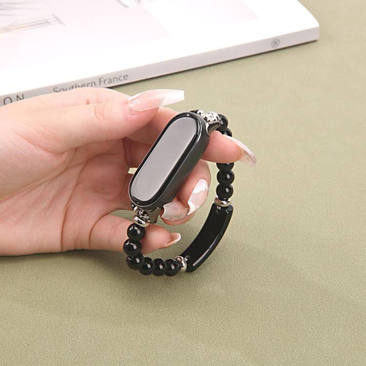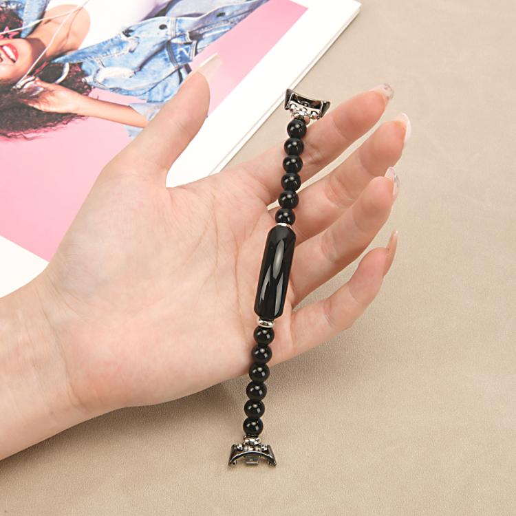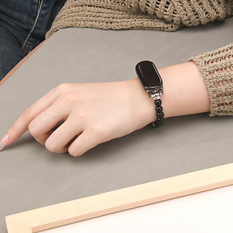 Correa de reloj con cuentas grandes para Xiaomi Smart Band 10/9/8 (cuentas de ágata negra)