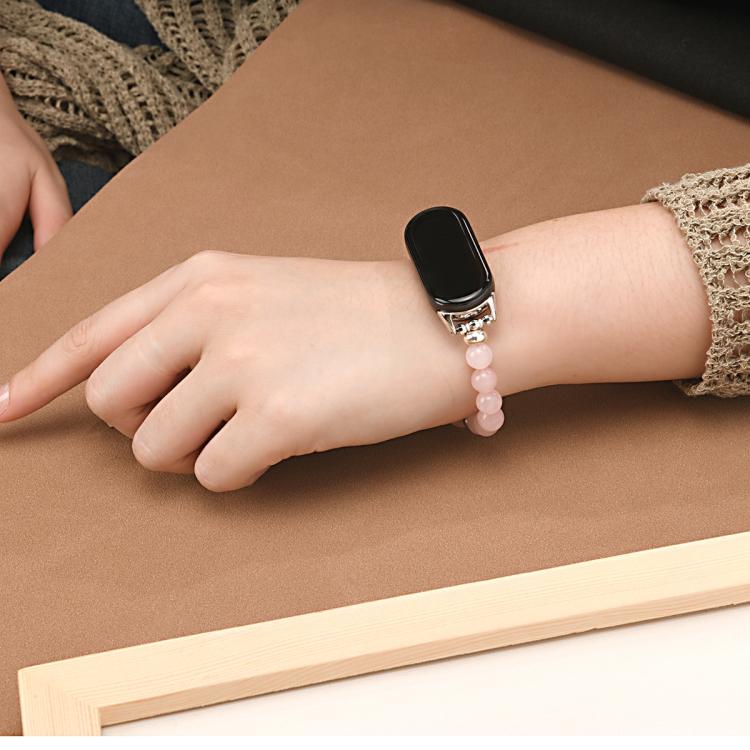 Correa de reloj con cuentas grandes para Xiaomi Smart Band 10/9/8 (cuentas de cuarzo rosa)