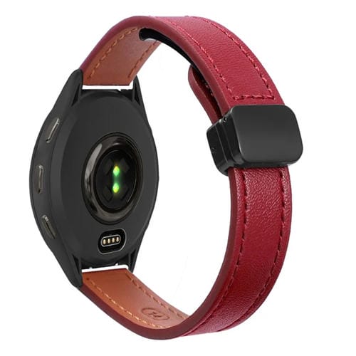 Correa de Reloj Cuero Microfibra con Hebilla Magnética 22mm para Garmin Venu 2 (Rojo Vino)