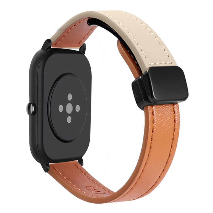 Correa de Reloj Cuero Microfibra Magnética 22mm para Amazfit Watch Bip5 (Naranja y Crema Albaricoque)